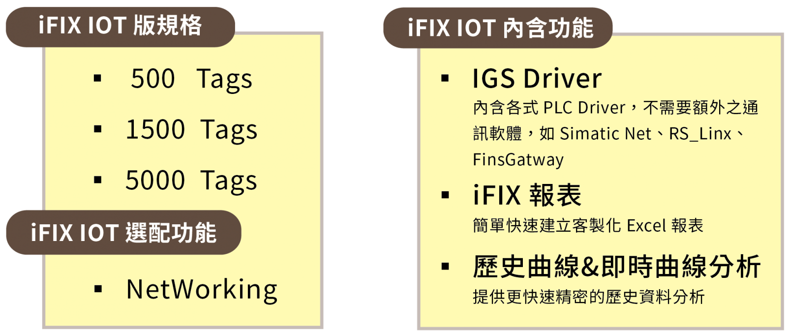 • 內建 IGS OPC 驅動程式
