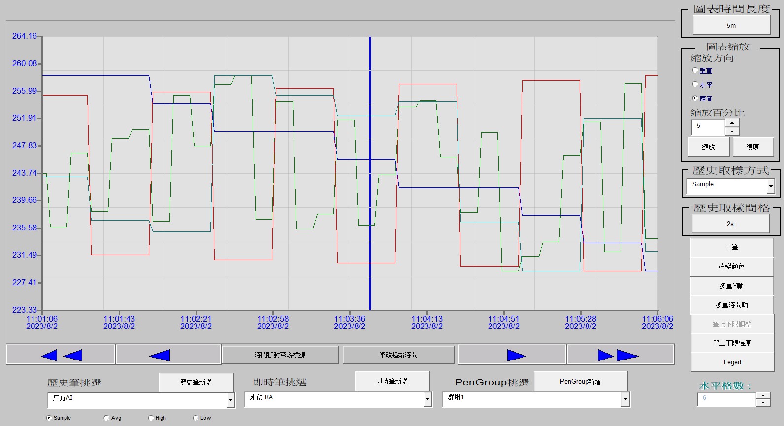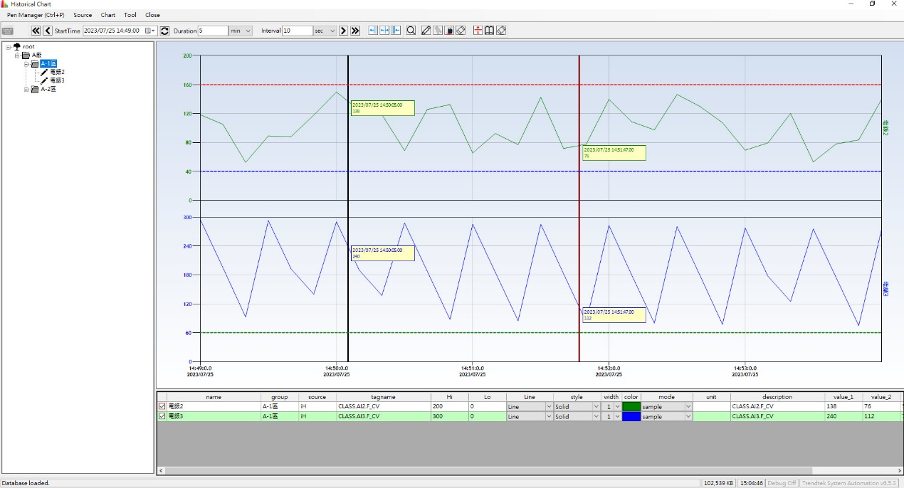 • 可將歷史資料和即時資料同時顯示於圖表內